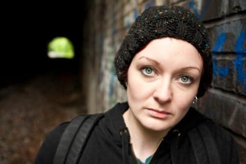 Wide-eyed woman in a tunnel at night asks if a Tennessee drug rehab centers have what she needs to recover.