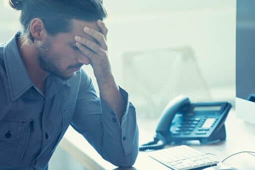 Man with hand on forehead at office desk experiencing drug side effects.Those who struggle with an addiction can experience a wide variety of different drug side effects. The side effects of drugs can be physical, psychological as well as social. Struggling with an addiction to drugs is extremely difficult because most people want to get clean. The issue is that addiction is an illness that makes a person believe they don’t have a problem or can never get well.
