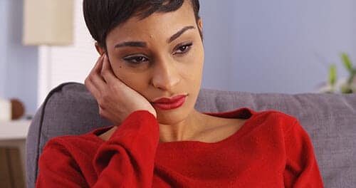 Woman in red with hand on face worrying about psychological disorders that keep cropping up with alcohol use.The link between alcoholism and psychological disorders is a strong one. In fact, addiction is a mental disorder itself. Understanding the link between alcohol and mental disorders is important when people seek help for drinking problems. For example, it’s important to know that alcoholism can lead to mental disorders and vice versa.